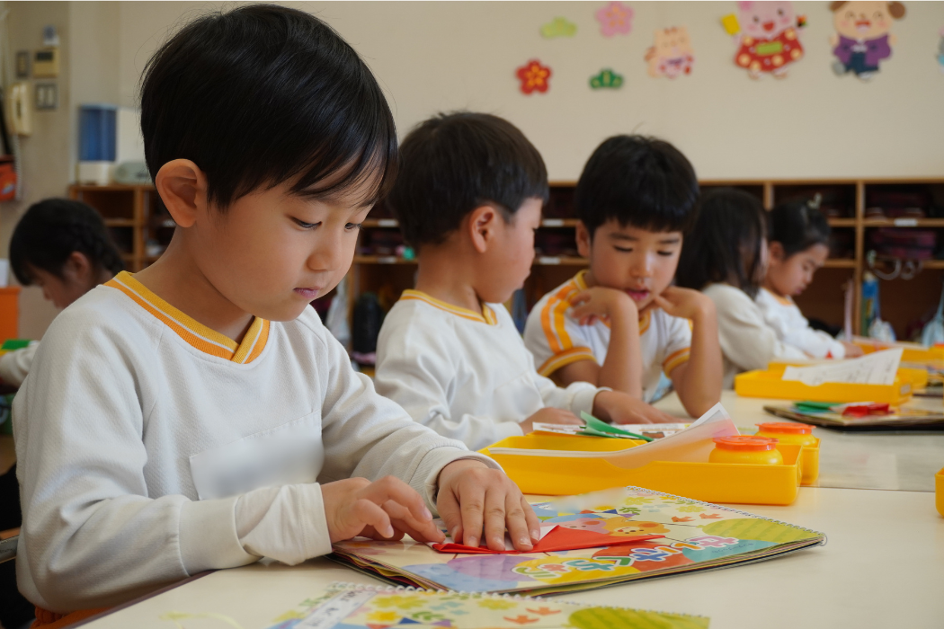 幼稚園は子どもにとって"楽しいあそび場"であると同時に、"教育の場"でもあります。その両方を大切にしながら、日々の保育を行っています。