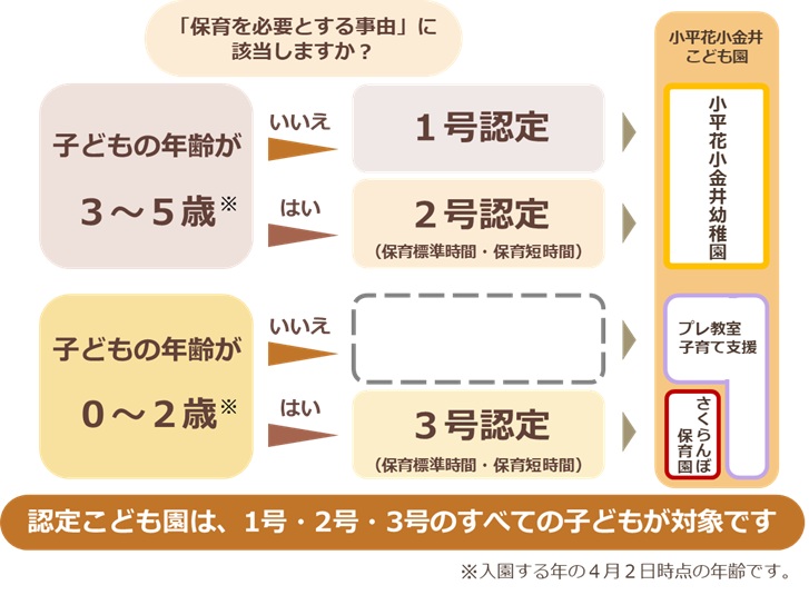 2号認定は、お子様が満3歳以上で、「保育を必要とする事由」に該当し、幼児教育・保育を希望される方。